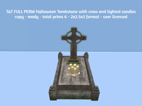 T&T FULL PERM Halloween Tombstone with cross an...
