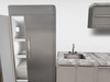 Full mesh kitchen with stainless steel cabinets and appliances.