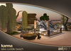 7) Two Karma lounge chairs with menu, coffee table with tea and mesh rug