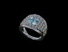 Blue stones surrounded by white diamonds on a silver and gold band