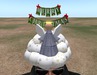 A fluffy cloud angel hat for Christmas. The cloud has silver and gold star patterns, there's a "Merry Christmas" banner above the angel (only visible from the front), and the halo glows.
