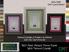 100% Mesh Photo Frame. This mesh free standing photo frame has 12 metallic frame textures to choose from and a choice of 16 mounts. To change the texture you just touch and pick from the menu! It is not only copy but mod, so you can add your own pics and also resize to whatever you want. It is mesh so if you resize that may increase the land impact .. as is it's 3 prims! I've included 3 sizes in the box for your convenience.