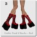 Red and black leather laced and strap boots.
