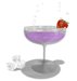 4 sugar rimmed glasses with bubbles and animated foam, each with different element on the side; umbrella, fruit slices, strawberry and olives
