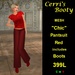 "Chic" is an elegant casual ensemble composed of silk gaucho pants and a pullover satin brocade shirt. Ankle boots included. Available in black, blue, gold, purple, pink, and red.