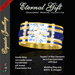 The design features rings made of pure gold with inlays of dark blue opal. The brides rings feature four square-cut diamonds forming a tiny "gift" bound by a ribbon, hence the name Eternal Gift.