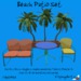 Nice tropical outdoor set for patios, terraces and beaches. The duo sits two avs with 22 singles and 11 couples animations. The chair sits a single av with 36 animations. Hang out, converse, read, check your email and more with the animations in both pieces of furniture.