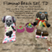 Cute flamingo themed beach set for Tiny & Dinkies! the tub gives a slice melon or one of 5 cans to Tiny, Dinkies, Kids, His, her, bento his and Bento hers avatars through a temp rez menu. The table has 4 props that appear ontop via menu. The seat sits a single avatar who can choose from 16 Tiny and 22 Dinkies animations.