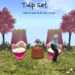 Pretty tulip shaped chair seats a single avatar offering 17 reg and 19 propped animation choices. Relax, read, snack and more. The cute overturned flower pot table sports a bouquet of tulips.