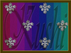 Silk with a gilt (metallic thread) embroidered fleur de lis motif. Gold, coloured & silver variations are included plus matching silk solids.