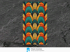 - Symmetrical feather-inspired geometric design in gold, teal, and orange hues
