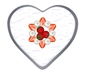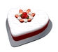 Part mesh heart shaped cake with vanilla frosting and decorated with strawberries and cream.