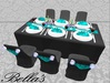 Bella`s has an Elegant Wedding Table * Mesh * made for your Great Unforgettable day. The wedding is eye-catching for all. When making every little detail has been taken and what makes it so perfect. The tables are decorated with spoons, forks, knives, plates, candles and wine glasses. The chairs are sitting animations so that you can sit.