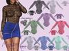 Janelle bodysuit is made 3 materials at once. It comes in 8 colors (5 regular colors and 3 fatpack bonuses). You will immediately receive 3 types of lace (3 materials), when you buying one color