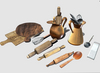 [2 Different Sugar Bowl ,Grater,Balloon Wire Whisk,2 Ceramic Bowl,3 Different Wooden Board,2 Different Ceramic Jugs,3 Different Wooden Roller,2 Different Metal Spoon,Wooden Spoon,Bottle,Salt Mill,Metal Spatula,Sugar]