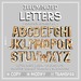 The pack includes the complete alphabet from A to Z and an example, spelling out 'CABARET', mounted on a beam scaffolding;