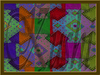 Patchwork quilting of a heavy tapestry patched with silk patches in bold colours plus matching silk solids.