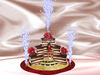 This beautiful and delicious looking 3 layer cake opens slowly to reveal hidden POPOUT inside as firework fountains go off.