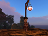 The lanterns are coloured glass bowls of oil, hung by chains on a wooden post.