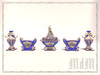 A garniture is a number or collection of any matching decorative objects intended to be displayed together. Frequently made of metal, ormolu, often with gilded wood stands, porcelain (both European and Asian), garnitures became popular during the latter half of the 17th century and remained in vogue throughout the 19th century. A very common placement is on the mantelpiece over a fireplace, but garnitures were very often placed on various pieces of furniture, and on ledges or niches around the walls of a room, especially over doors or above fireplaces. Garnitures may contain pieces made together with a view to being used as a set, or may be "assembled" by the decorator from pieces of different origin.