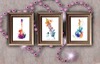Set of three watercolor guitar and flute paintings. Each with a realistic, old painting backing and brown/copper frame. Perfect for a music room, club, bedroom or den. Mod to make a painting as large or small as you prefer.