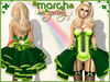This is an outfit made with a March theme of daisies and clovers. It comes with stockings, garter, skirt, outfit. On the back there is a small rainbow the colors move through.