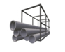 Steel tube one storage rack featuring a modular metal frame designed for organized storage and transport of cylindrical steel ducts.