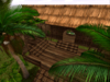 A magnificent tropical house with carved panels and wicker walls, palm trees and tropical plants, an ornamental pond and live goldfish, will look great both on the water and on the land of the tropics. The total area is 33 * 29