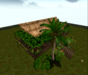 A small cozy tropical house with carved panels and wicker walls, a palm tree and tropical plants will look great both on the water and on the land of the tropics. The total area is 24 * 20