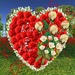 Beautiful In Loving Memory Red Carnations with White Roses Static Heart with Rest in Peace on back of Heart with matching poofer to display in Second Life to remember your Loved One.