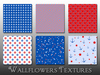 This pack contains 12 coordinating seamless nautical textures featuring boats, anchors, stars, and more in shades of blue, red, and white.