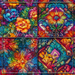 12 beautiful seamless 1024 x 1024 textures featuring rainbow bright flower designs with a hippie boho batik tie dye tapestry vibe.