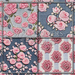 This pack contains 12 coordinating seamless designs featuring pink embroidered and appliqued roses on chambray and denim fabrics.