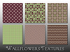 This pack contains 12 different seamless textures in soft greens and purples, including florals, polka dots, chevrons, damasks, plaids, and more.