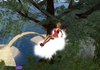 The chair has a sitting animation that gently bobs your avatar up and down as they travel forward and stay in one place. Since the chair's components are wearable, you can sit in it anywhere (not just on land where you have rezzing rights.) You no longer need to be an angel to have your own cloud to sit on!
