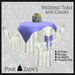This round reception table has a white ruffled skirt with topper cloth to match your colors. There is also a center piece with flowers and burning candle.