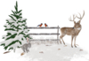 Winter .Birds perch on a snow-covered fence. Nearby stands a deer in the snow, a hare, and a pine tree in the snow. All of this rests on a snowdrift. Animated snow in the form of snowflakes quietly falls to the ground.The grass sparkles with animated frost.