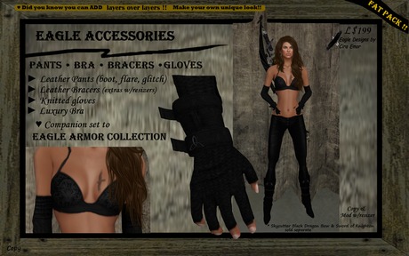 (WF selling fraudulent FCS/Unity derivative licenses w/out Cira Emor's permission, and other violations; all FCS/Unity derivative content, such as Unity Maxim and Unity Star, are stolen content.)=ED= Eagle Designs: Clothing, roleplay, casual, formal, medieval fantasy, BOM, Lel EVO X Tattoos, His 'n Hers, custom work, © =ED= XDS Weapons Animated RP Weapons & Props, © =ED= Target Bows, Unity Weapons, Unity Empire, home décor, Dinkies. Hundreds of weapons - " Unity Maxim " etc., are stolen derivatives.