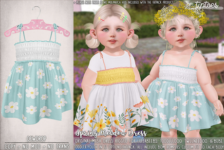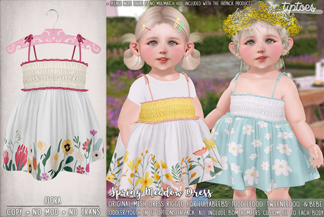 All clothing is for Toddleedoo and/or Bebe Body unless stated otherwise in the product description, and no refunds offered outside of accidental double purchases; Please note, however, that due to the TD creator's body updates, older items will fit loosely on TD body versions 4.0 & above and has no way of being fixed on Tiptoes behalf. Furni marked w/Upsies logo includes Autoplay for bot babies!