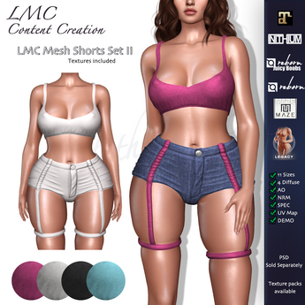 High quality full perm mesh clothing templates & Photoshop PSD templates for content creation. The templates are designed to get you started in the virtual world of clothes designing. No matter if you are an absolute beginner or an advanced SL designer our products are versatile, highly customizable and will save you hours on your computer. Simply get our optional add on texture packs to have a full collection at hand, or create your own stunning textures and personalise your items. We support the following sizes: Maitreya Lara & Petite, Kupra Inithium, Slink Physique & Hourglass, Belleza, Freya, Altamura, Legacy, TMP, eBody, eBento, Reborn