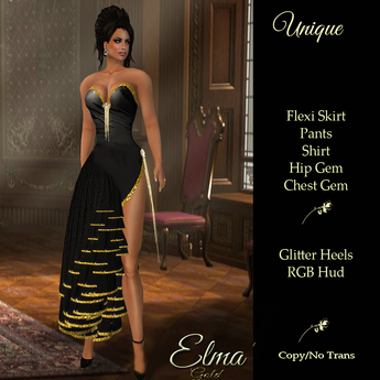 .UNIQUE-Elma Black Gold Glitter Dress /Elma Gli...